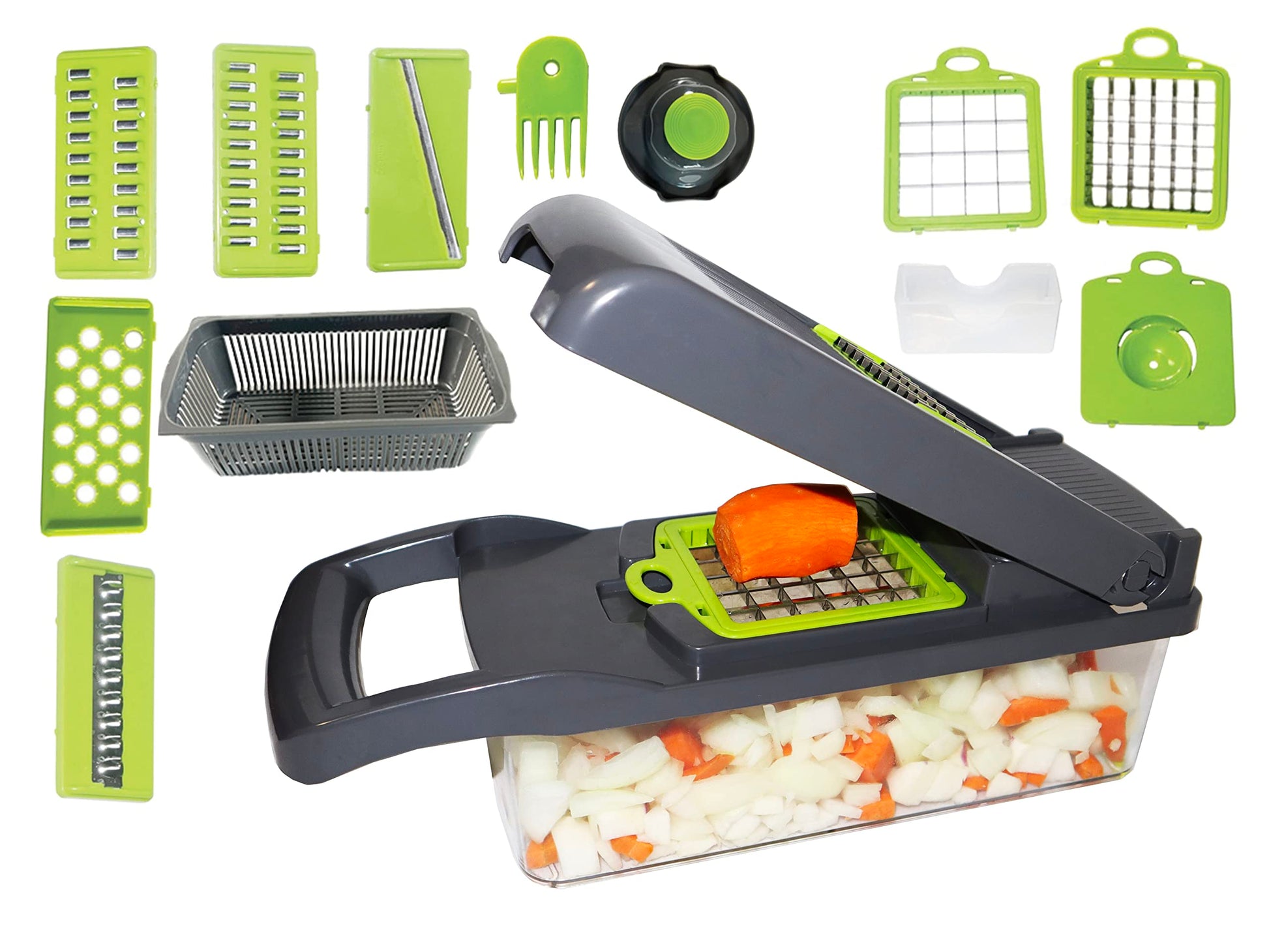 12 funciones en 1 solo producto: corta en cubos, tiras, rodajas y más